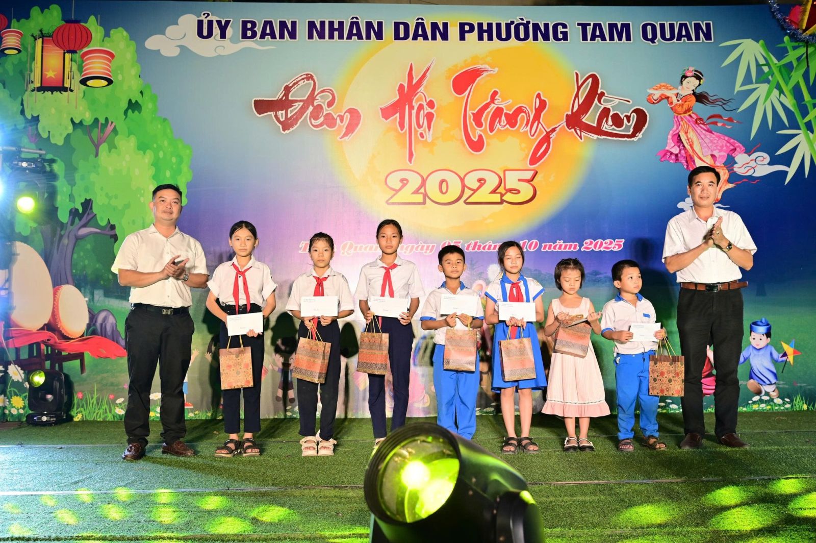 Dịp này, thông qua các nhà tài trợ, UBND phường Tam Quan đã trao 18 suất quà cho các em thiếu nhi có hoàn cảnh khó khăn vươn lên học khá, giỏi (mỗi suất trị giá 500 nghìn đồng). Ban Tổ chức cũng đã tặng 600 suất quà Trung thu với tổng giá trị 30 triệu đồng cho các cháu thiếu nhi tham gia Đêm hội.
