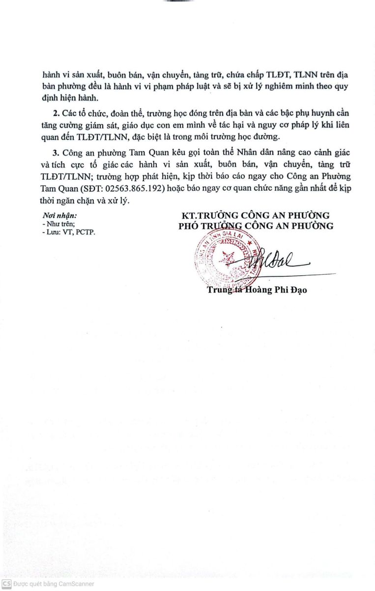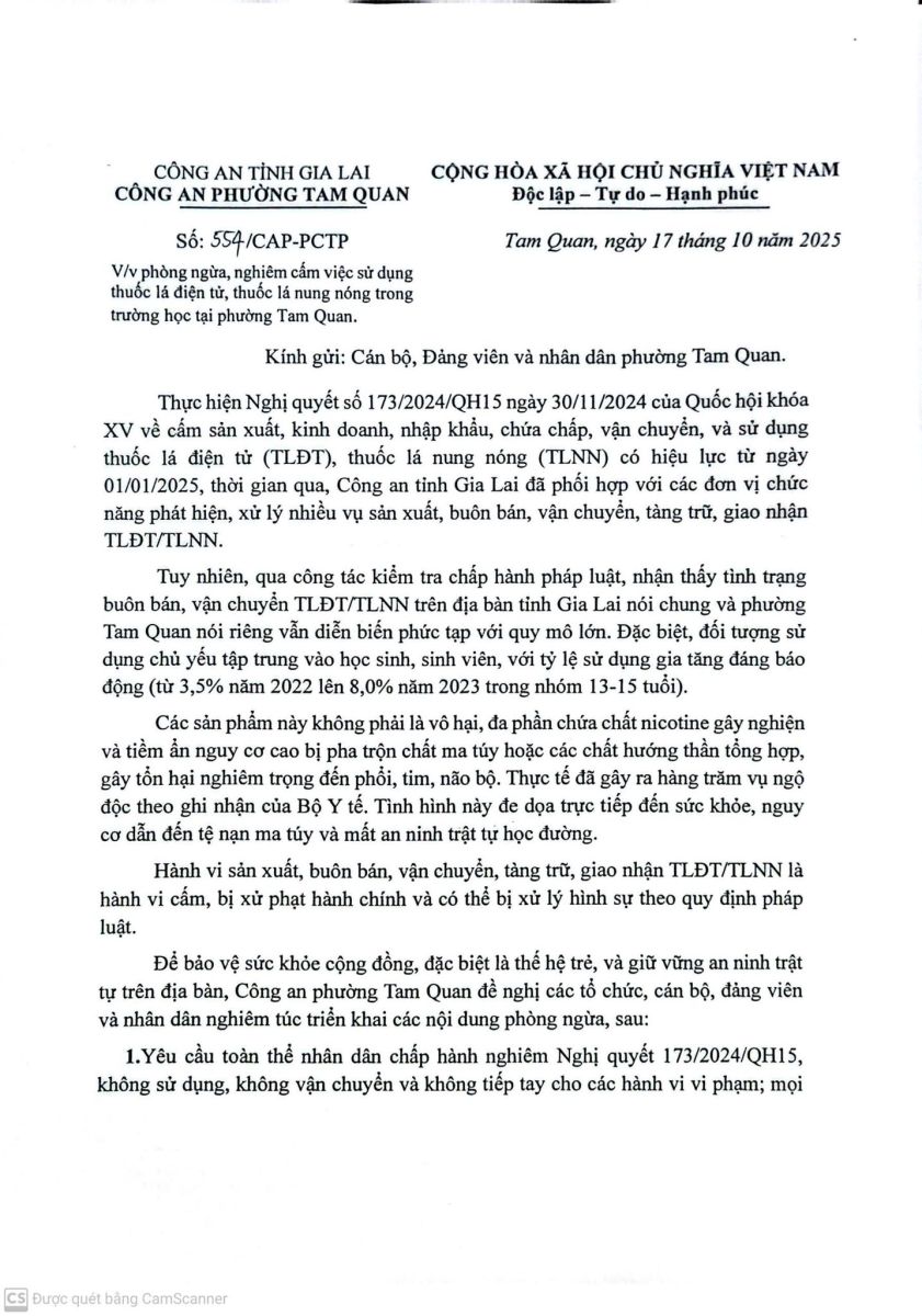 CÔNG AN PHƯỜNG TAM QUAN thông báo đến cán bộ, đảng viên và nhân dân trên địa bàn phường về việc phòng ngừa, nghiêm cấm việc sử dụng thuốc lá điện tử, thuốc lá nung nóng trong trường học trên địa bàn phường