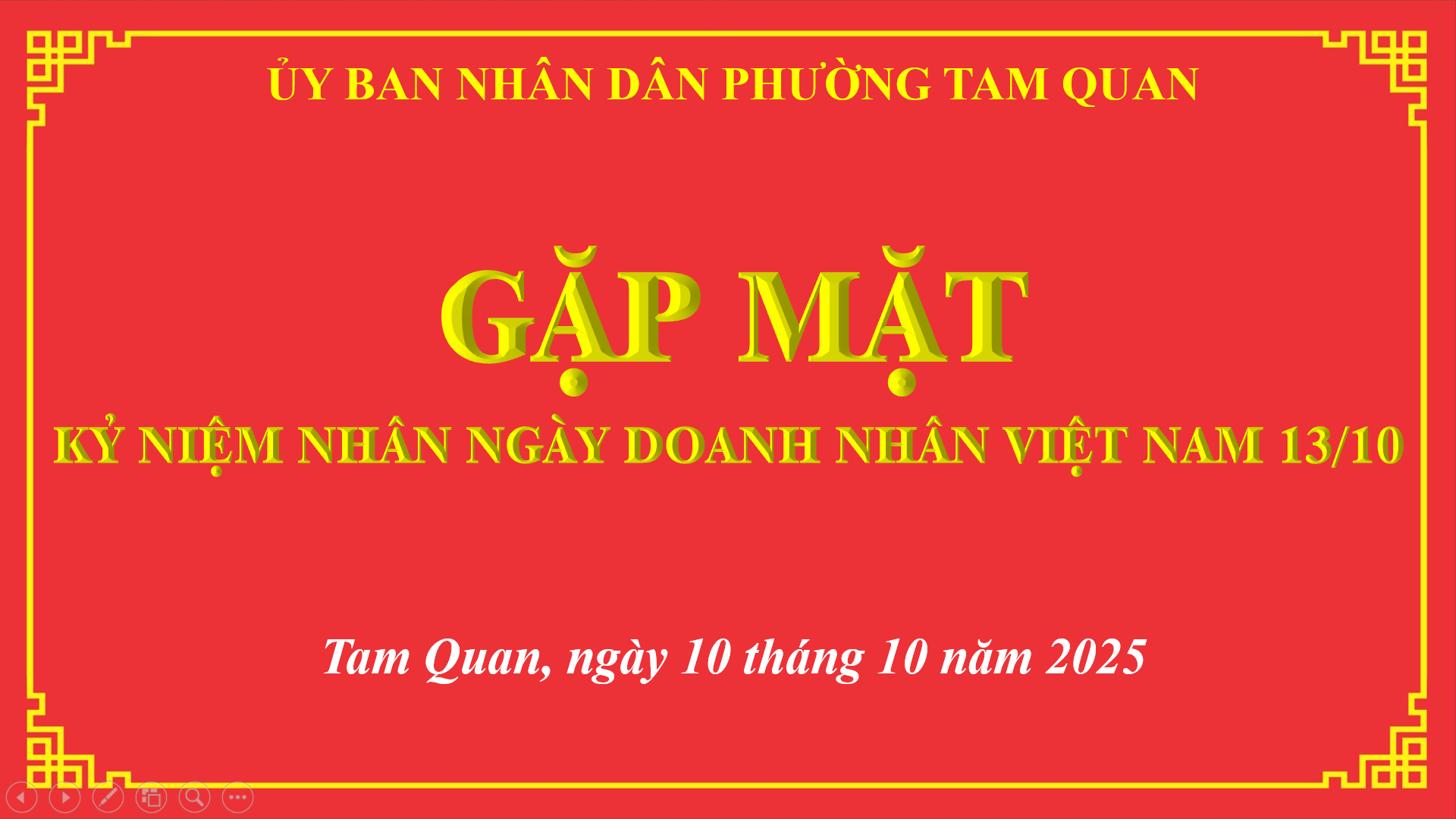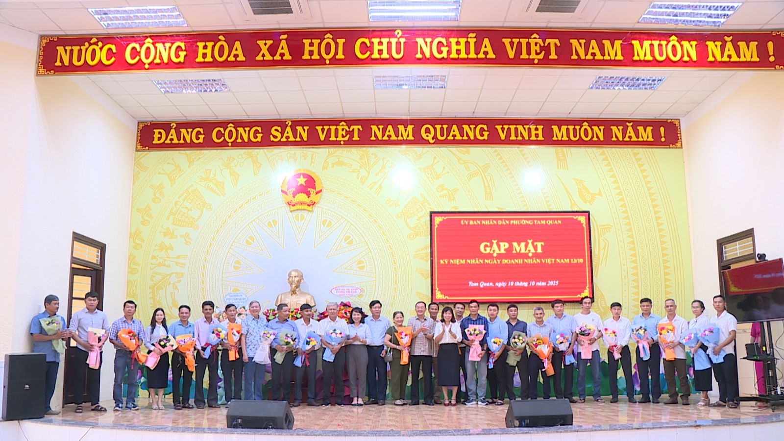 Chiều ngày 10/10/2025, UBND phường Tam Quan tổ chức gặp mặt các doanh nghiệp trên địa bàn phường nhân kỷ niệm ngày doanh nhân Việt Nam 13/10. Dự buổi gặp mặt có các đồng chí Lê Minh Đức – Bí thư Đảng uỷ, chủ tịch HĐND phường, Nguyễn Thị Nhung – Phó bí thư TT Đảng uỷ, Trần Văn Quyết– Chủ tịch UBMTTQ VN phường, các đồng chí UVBTV Đảng ủy, UV BCH Đảng bộ, Lãnh đạo Thường trực HĐND, UBND, UBMTTQ VN phường, Thủ trưởng các cơ quan, đơn vị trực thuộc phường cùng 45 doanh nhân, doanh nghiệp, cơ sở sản xuất, kinh doanh dịch vụ tiêu biểu trên địa bàn phường. Các đồng chí Trương Thị Thuý Ức – Phó bí thư Đảng uỷ, chủ tịch UBND phường, các PCT La Long Quyết, Võ Tấn Cương đồng chủ trù buổi gặp mặt.