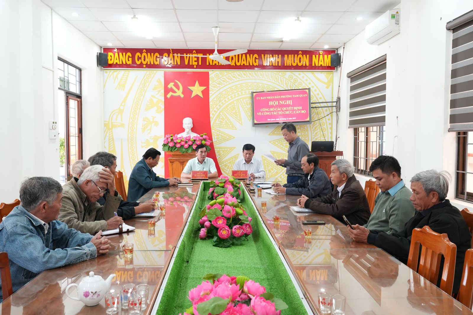 Tại Hội nghị, lãnh đạo Phòng Văn hoá – Xã hội phường đã công 5 Quyết định gồm Quyết định về việc hợp nhất Hội Cựu TNXP phường Tam Quan và Hội Cựu TNXP xã Hoài Châu (cũ) thành Hội Cựu TNXP phường Tam Quan; Quyết định về việc hợp nhất Hội Cựu tù CTCM phường Tam Quan và Hội Cựu tù CTCM xã Hoài Châu (cũ) thành Hội Cựu tù CTCM phường Tam Quan; Quyết định về việc hợp nhất Hội Khuyến học phường Tam Quan và Hội Khuyến học xã Hoài Châu (cũ) thành Hội Khuyến học phường Tam Quan; Quyết định về việc hợp nhất Hội Người cao tuổi phường Tam Quan và Hội Người cao tuổi xã Hoài Châu (cũ) thành Hội người cao tuổi phường Tam Quan và Quyết định về việc hợp nhất Hội Chữ thập phường Tam Quan và Hội Chữ thập đỏ xã Hoài Châu (cũ) thành Hội Chữ thập đỏ phường Tam Quan. Đồng thời chỉ định nhân sự Chủ tịch, các Phó Chủ tịch của các hội quần chúng.