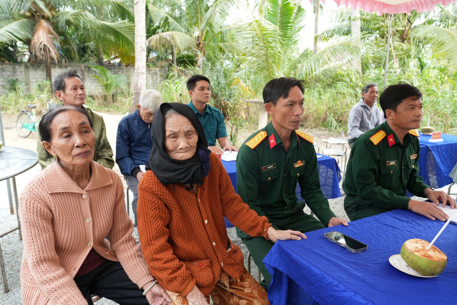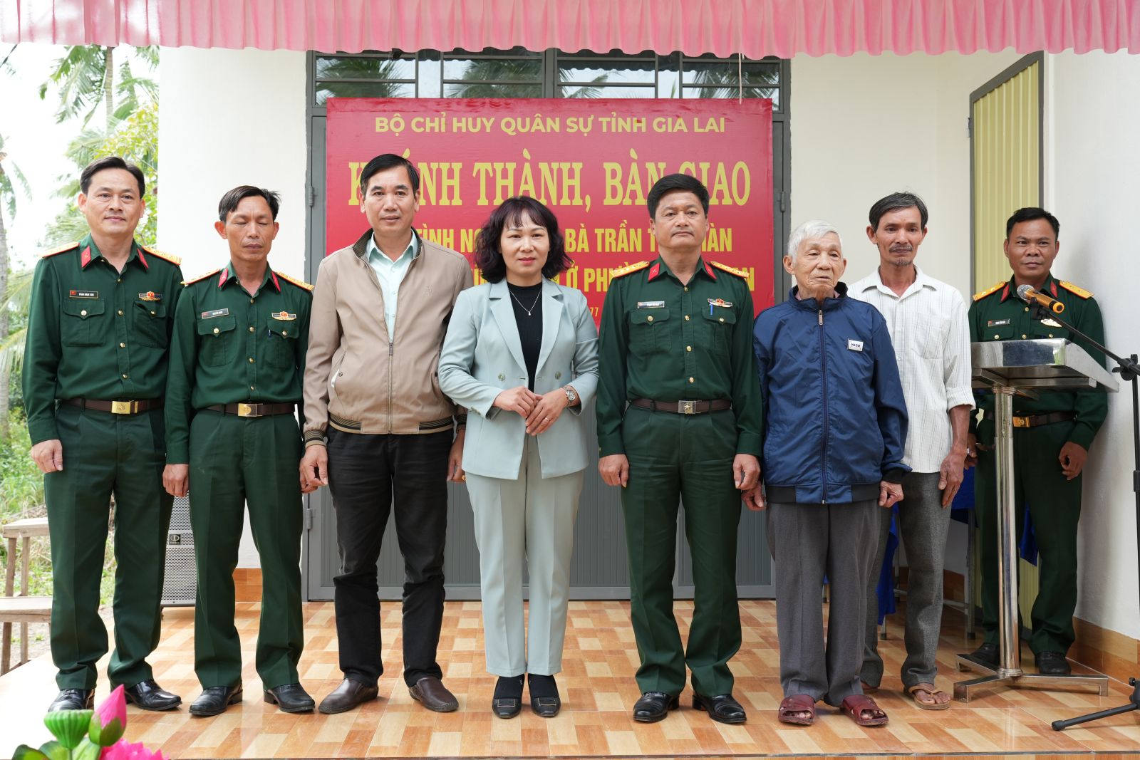 Trong buổi lễ, lãnh đạo Bộ CHQS tỉnh, Ban chỉ huy PTKV 1 – Hoài Nhơn Nam cùng địa phương đã chúc mừng và trao tặng cho gia đình bà Trần Thị Nhàn những vật dụng thiết yếu cho sinh hoạt hàng ngày.