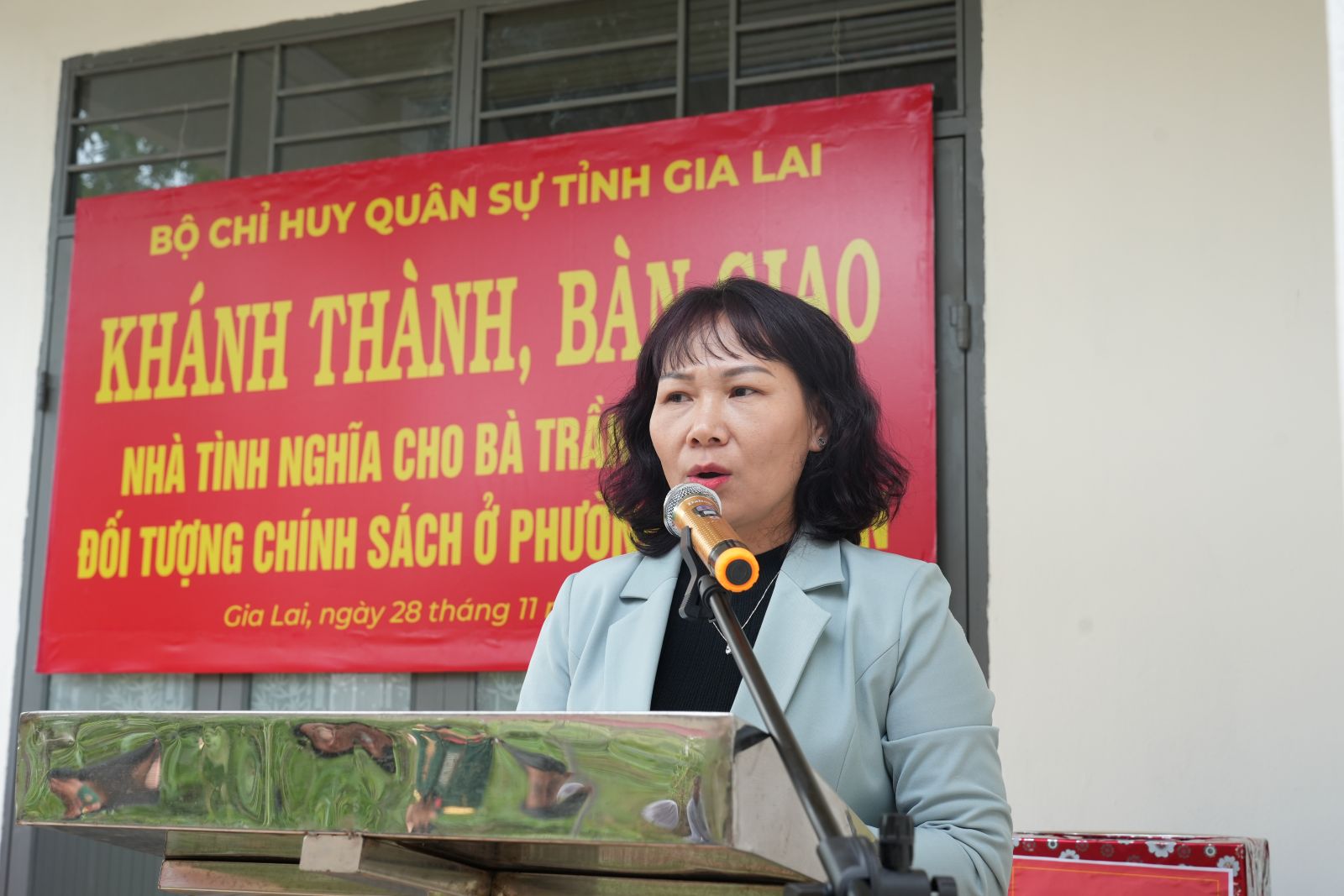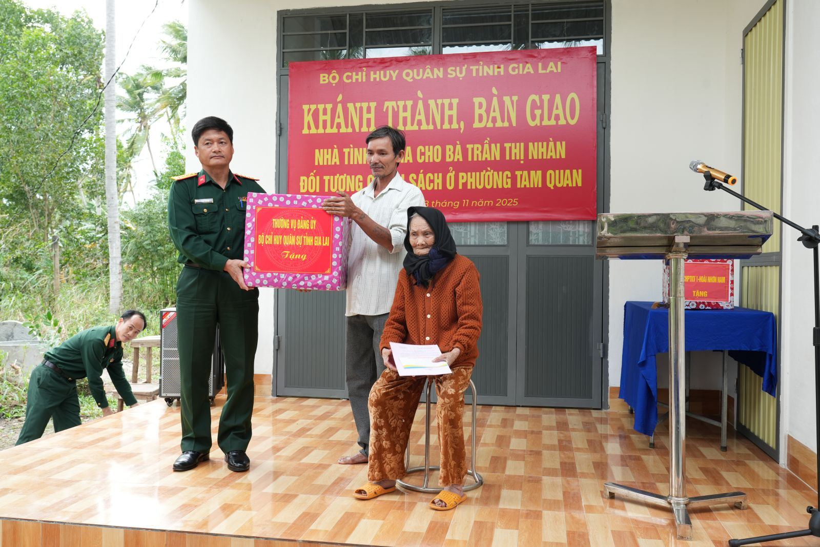 Chiều ngày 28/11, Bộ chỉ huy quân sự tỉnh Gia Lai phối hợp với Ban chỉ huy PTKV 1 – Hoài Nhơn Nam và UBND phường Tam Quan tổ chức bàn giao nhà tình nghĩa cho hộ gia đình chính sách Trần Thị Nhàn ở khu phố Thành Sơn, phường Tam Quan, là thương binh có hoàn cảnh khó khăn, nhà ở xuống cấp. Dự lễ bàn giao có Đại tá Phạm Văn Đạt – Phó chính ủy Bộ chỉ huy quân sự tỉnh; Nguyễn Thị Nhung – Phó bí thư Thường trực Đảng ủy, Võ Tấn Cương – Phó chủ tịch UBND phường.