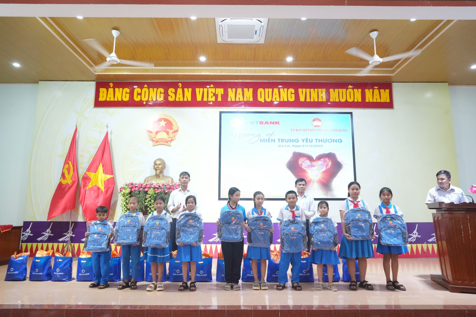 Tại chương trình, Ban Tổ chức đã trao 125 suất quà gồm gạo và tiền mặt cho các hộ dân bị ảnh hưởng nặng bởi bão số 13 Kalmaegi. Bên cạnh đó, Vietbank còn trao 60 phần quà là cặp sách dành tặng các em học sinh tiểu học có hoàn cảnh khó khăn trên địa bàn phường.