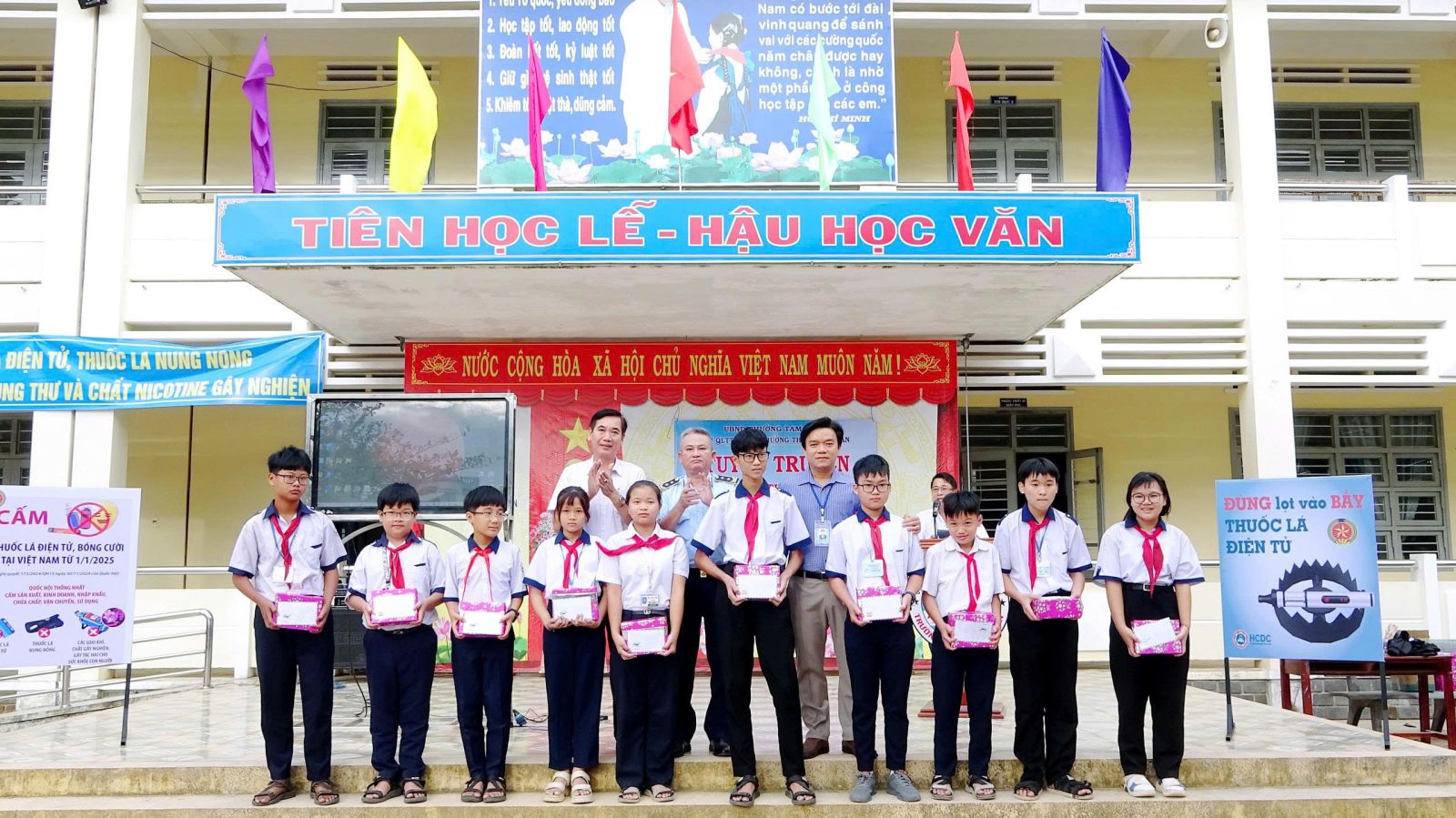 Học sinh cũng đã được nghe phổ biến các tác hại của thuốc lá điện tử, thuốc lá nung nóng như gây tổn thương phổi, ảnh hưởng hệ thần kinh, hệ hô hấp, nguy cơ gây nghiện nicotine và tác động tiêu cực đến sự phát triển của trẻ vị thành niên. Đồng thời các em cũng được phát tờ gấp tuyên truyền hướng dẫn cách nhận biết và phòng tránh các hành vi liên quan đến buôn bán, quảng cáo và sử dụng thuốc lá điện tử, thuốc lá nung nóng.